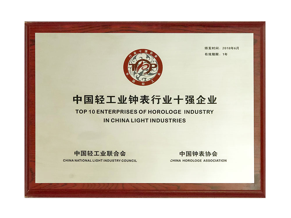 雷諾表榮獲“中國輕工業鐘表行業十強企業