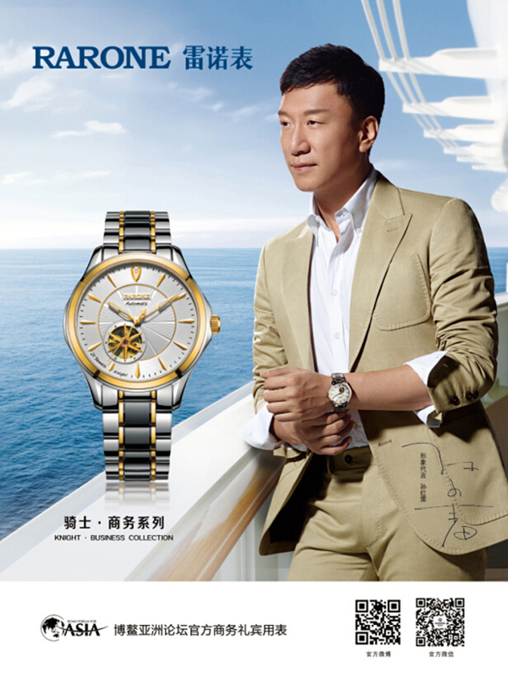 同時(shí),作為商務(wù)手表品牌,雷諾表自2010年起成為博鰲亞洲論壇長期合作伙伴,并每年為參會的政商界精英敬獻(xiàn)商務(wù)之禮,并于2011年起邀請著名影星孫紅雷先生正式代言雷諾表。