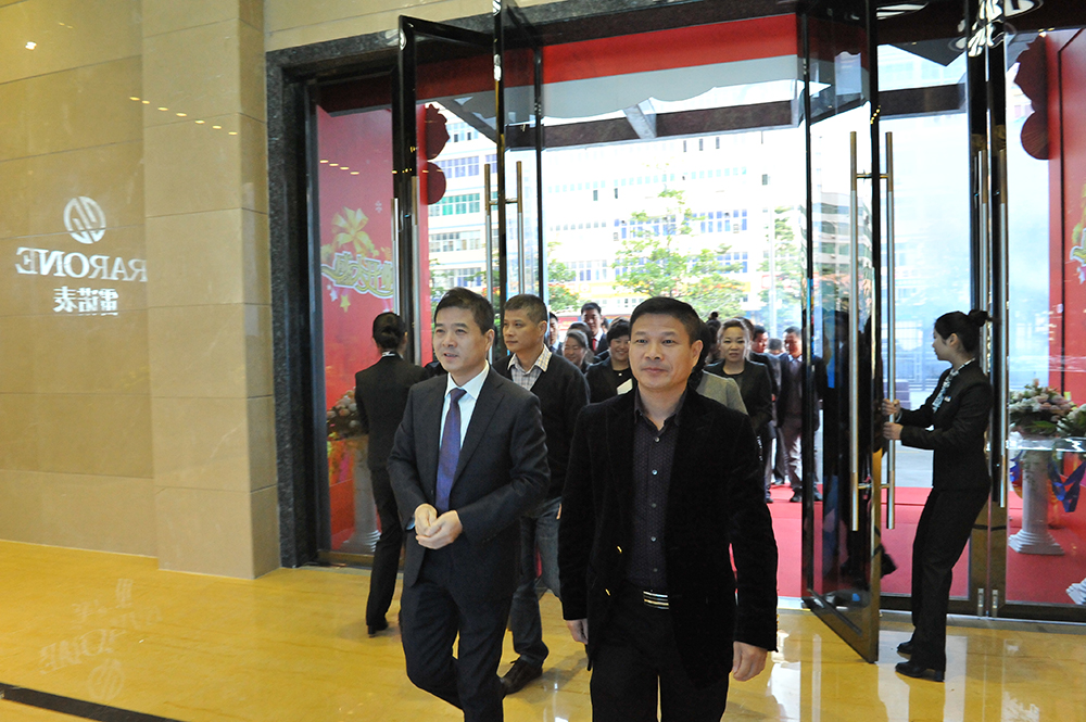 2015年1月19日,隨著喜慶的炮竹聲響,雷諾表總部展廳盛大開(kāi)業(yè)!董事長(zhǎng)詹西洲先生,總經(jīng)理詹江洲先生,及詹省洲先生出席開(kāi)業(yè)慶典,并親自推開(kāi)展廳大門(mén),宣布展廳正式開(kāi)業(yè)迎賓!雷諾表全體員工以及來(lái)自全國(guó)各個(gè)省市的區(qū)域經(jīng)理,共同見(jiàn)證了2015年開(kāi)年盛事。