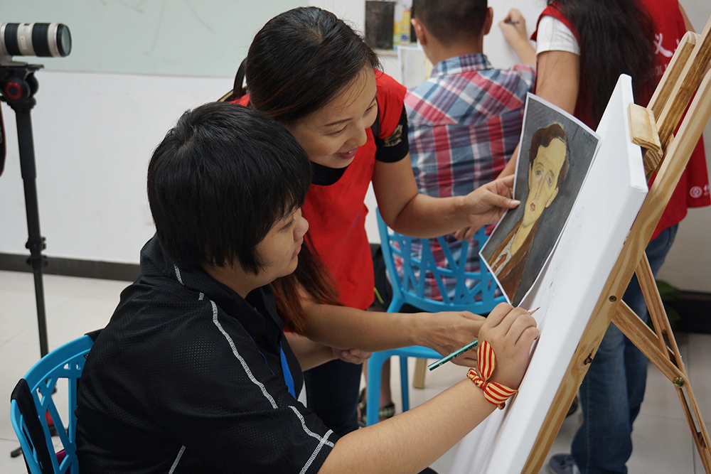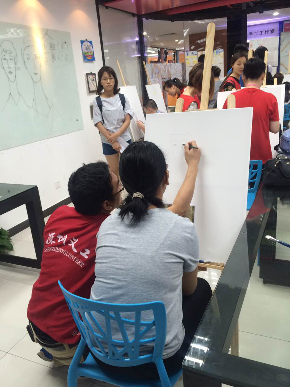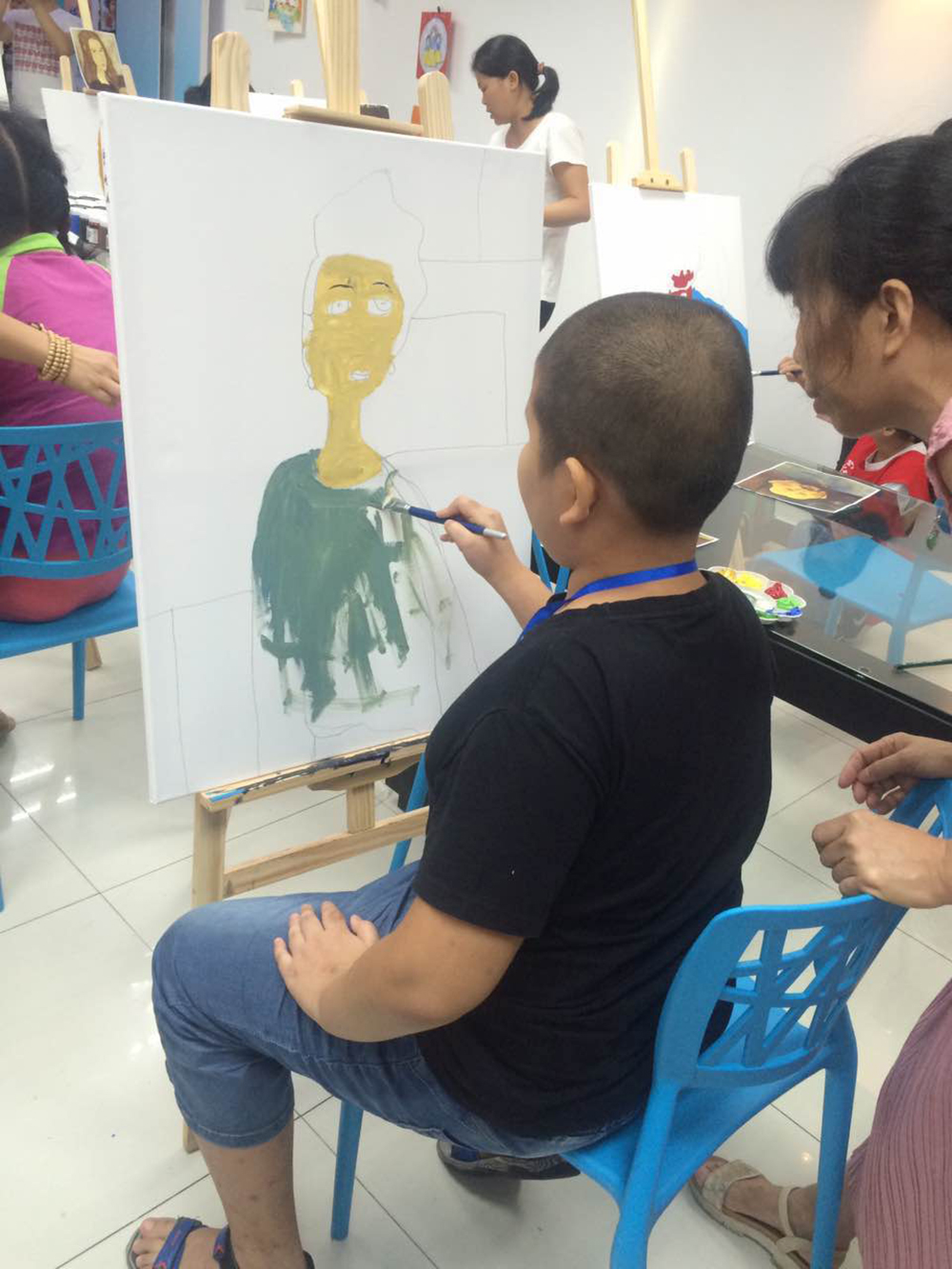 開課當(dāng)天,自閉癥兒童在義工的陪伴下,跟著繪畫老師學(xué)會(huì)畫筆,到慢慢完成繪畫課,他們的注意力很專注,對色彩有特別的偏愛,整個(gè)繪畫課程簡單有趣,加上義工的耐心陪伴,讓畫室洋溢著一種溫馨有愛的氣息。
